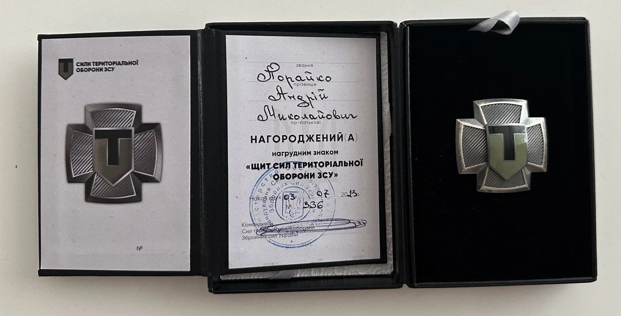 Волонтера Порайка Андрія Миколайовичу було нагороджено за активну участь в гуманітарній та соціальній місіях спрямованих на підвищення рівня обороноздатності держави та Сил територіальної оборони почесним нагрудним знаком «Відзнака командувача Сил територіальної оборони Збройних Сил України».